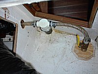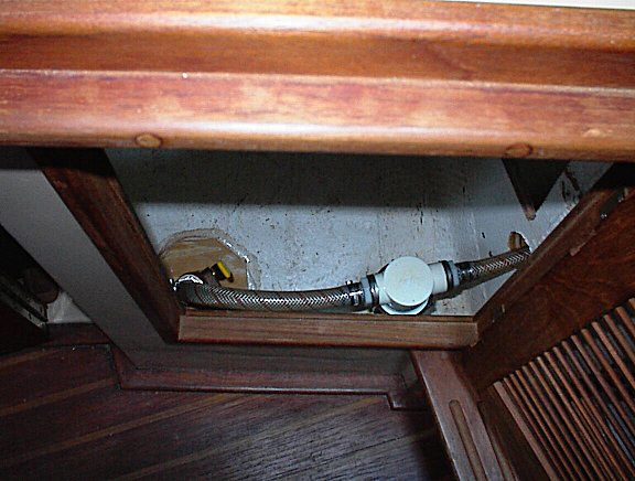 through hole, sea-cock and strainer installed in port side cabinet below v-berth