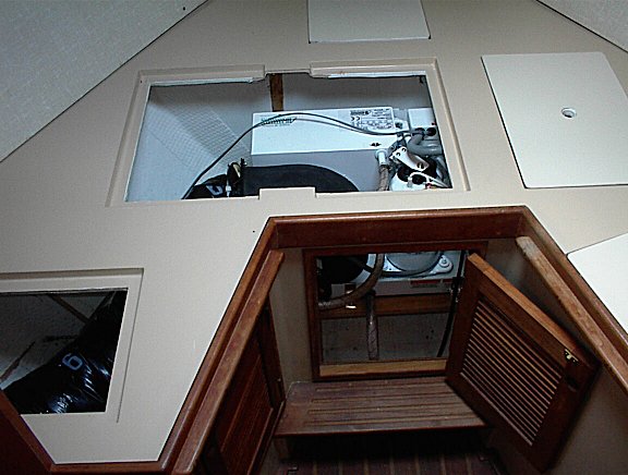 heat pump installed under v-berth