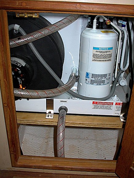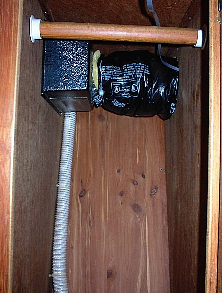 You can see the small discharge grill located on the side of the hanging locker.  You can also see the sea-water discharge tube running to the right of the photo.